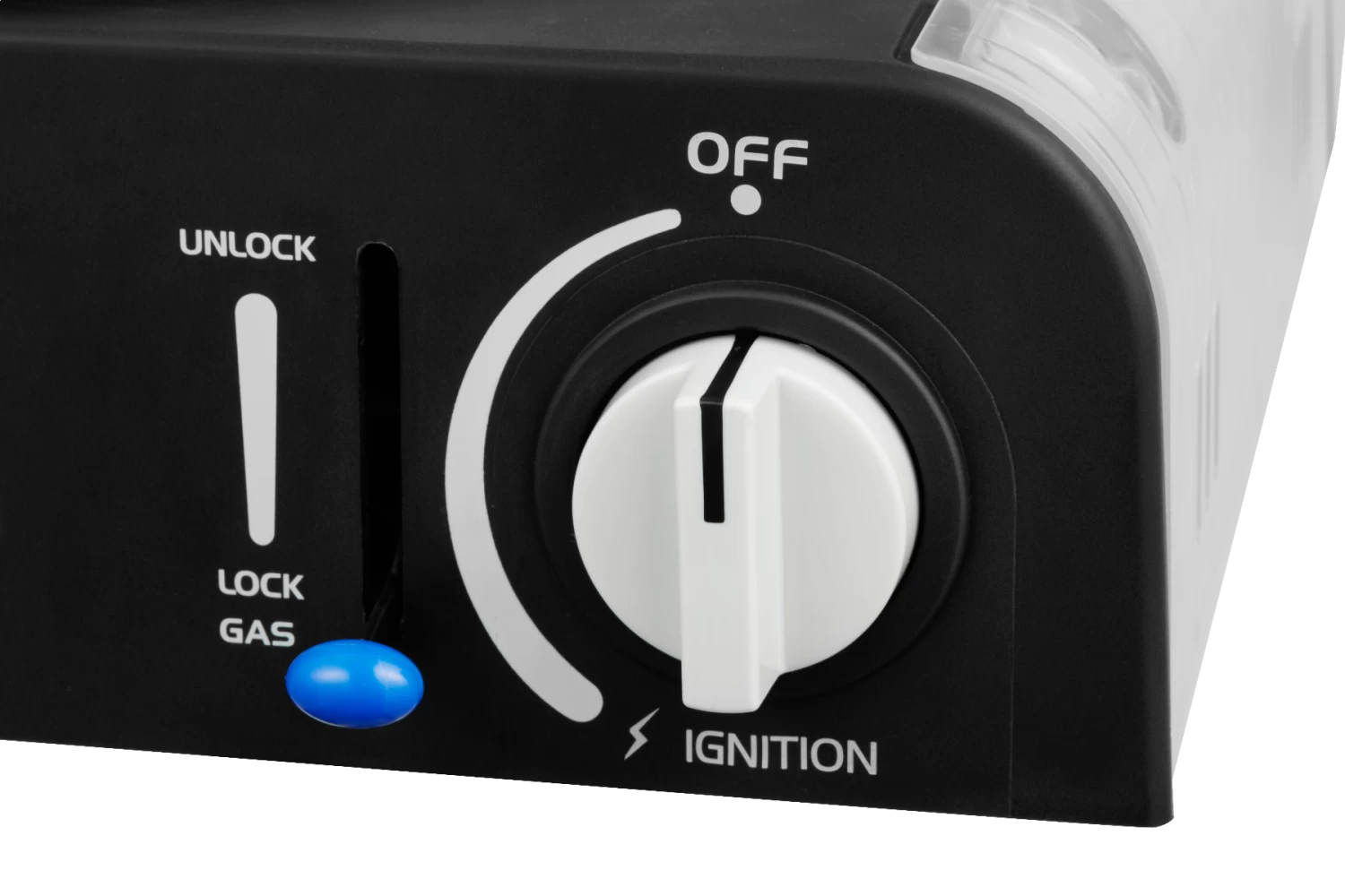 The fat pan collects any cooking residues when you use the BBQ grid, but also serves as a wind screen so that the burner does not blow out on windy days.