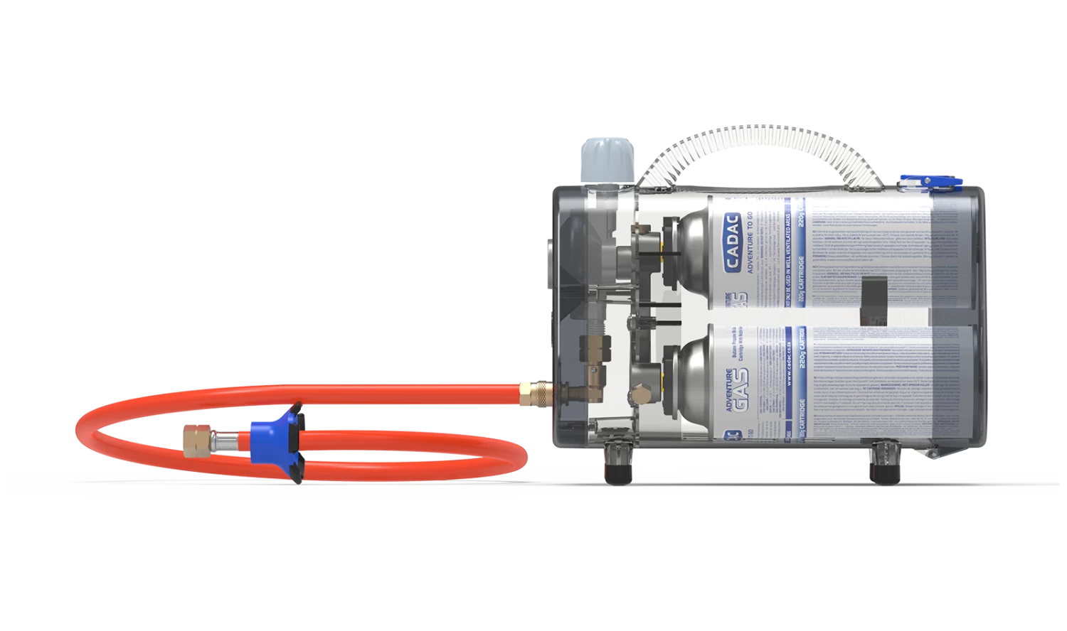 - The gas supply hose is removable as it is fitted with a CADAC QR/Quick Release connector.