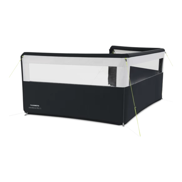 Utilising our unique AirFrame system with single point inflation, the AIR Break Pro is surprisingly sturdy in the wind and its striking colour combination and use of Weathershield™ Pro material make it a great match for our AIR Pro awnings. A window panel runs throughout the windbreak allowing visibility out.