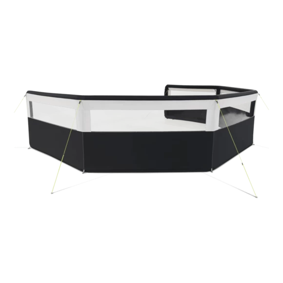Utilising our unique AirFrame system with single point inflation, the AIR Break Pro is surprisingly sturdy in the wind and its striking colour combination and use of Weathershield™ Pro material make it a great match for our AIR Pro awnings. A window panel runs throughout the windbreak allowing visibility out.