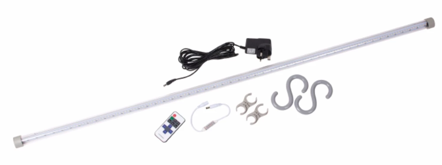 Each system is controlled using a remote control that allows you to switch the lights on and off and also dim and brighten them. In our poled awnings the lights can be hung from the horizontal poles using the ‘S’ hooks provided.