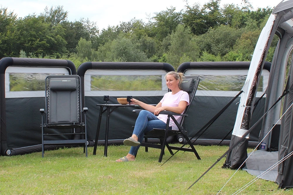 The Oxygen Windbreak is the most practical, flexible and innovative windbreak on the market for the new season. Joining Outdoor Revolution’s growing collection of exclusive registered designs; the premium five metre Oxygen Windbreak three paneled inflatable windbreak has been designed to effectively deflect wind for up to five metres around your touring arrangement, whilst featuring a coordinated design to complement the contemporary aesthetic of our latest caravan awnings, drive away awnings and family tents. This windbreak can be infinitely extended, as much as you desire, using our Optional Zip-On Panel Sections. Each section is flexibly hinged, enabling you to adjust the configuration of the windbreak to suit your personal preference. We have situated an upper window panel on each section, allowing you to retain an excellent outlook of any surroundings, whilst relaxing behind the windbreak. This windbreak can be attached to your caravan, using our Optional 6mm Kadar Strip.