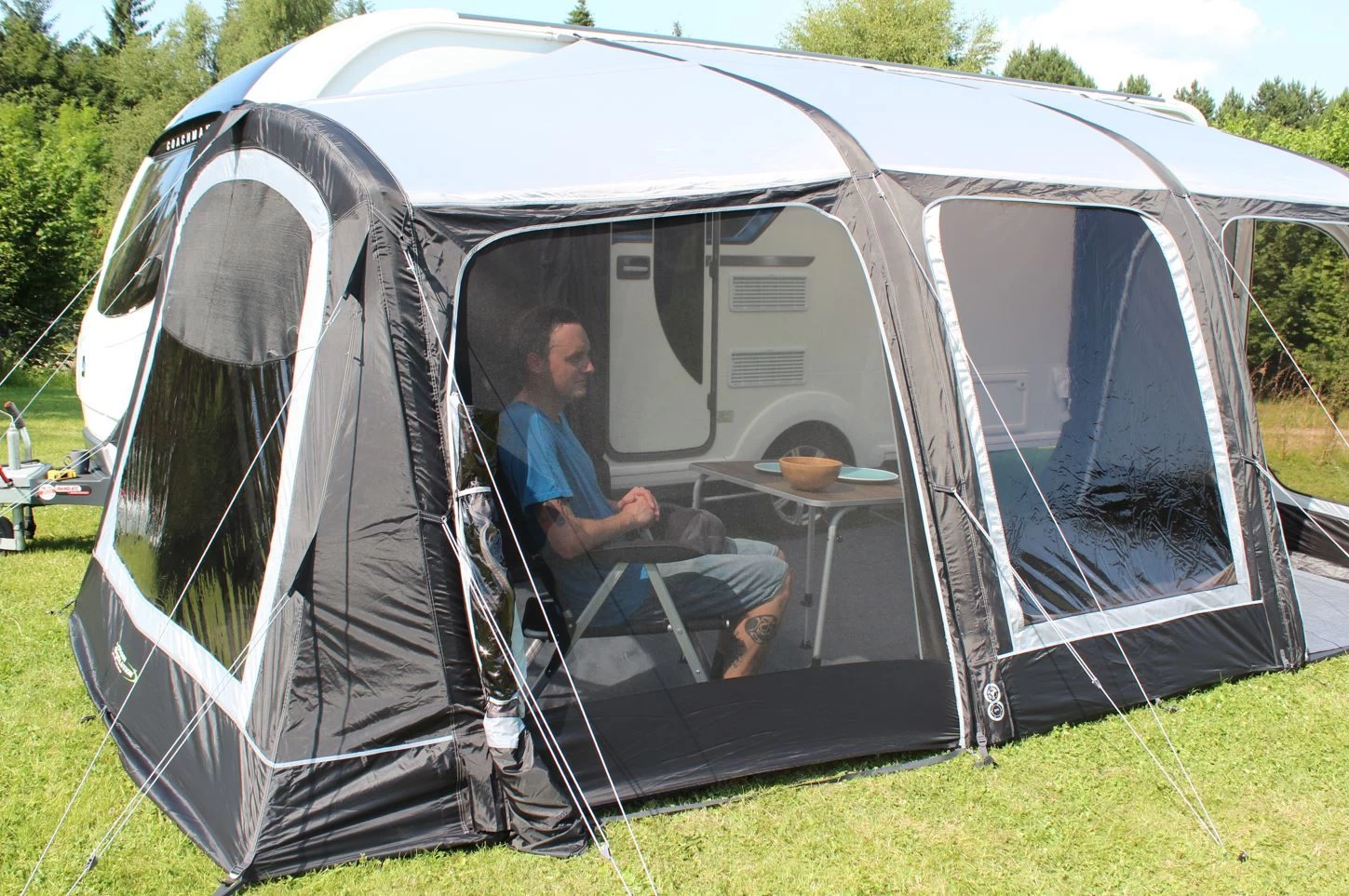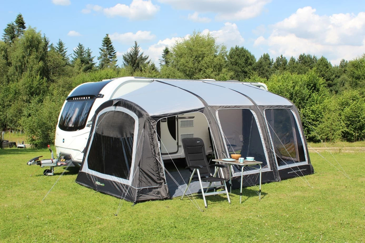 The Best Selling Sportlite Air collection offers high-performance inflatable Caravan Awnings designed by caravanners, for caravanners, with functionality and practicality in mind. The all new Sportlite Air 320EX features an integral tall extension which can be used for extra storage space, dining, or with the addition of a clip in 2-berth inner tent, can be used as a sectioned off private bedroom area.
