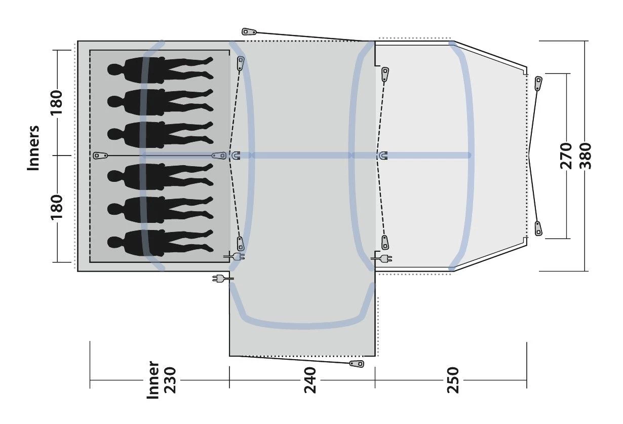 With superb style, features and reliable performance, you’ll appreciate why the award-winning Outwell Airville 6SA air tent has become a reliable camping favourite. Fast and easy to pitch, your family will appreciate its innovative Outtex 6000 RS Endurance fabric with superior tear strength and resistance to rips. The great internal space created in both height and width ensures ample room for happy tent life. Plus, our Wing Lounge, with toggle-up divider, adds an extra dimension of use as play area for the kids, a cosy corner for relaxing, for storage or as a flexible sleeping area. Sleeping six, with comfort, style and versatility, it’s the perfect family tent for demanding campers who want to make the most of their precious holiday times together.