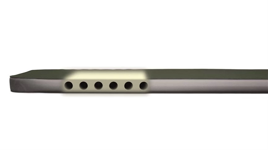 - Horizontal air channels reduce weight and pack size