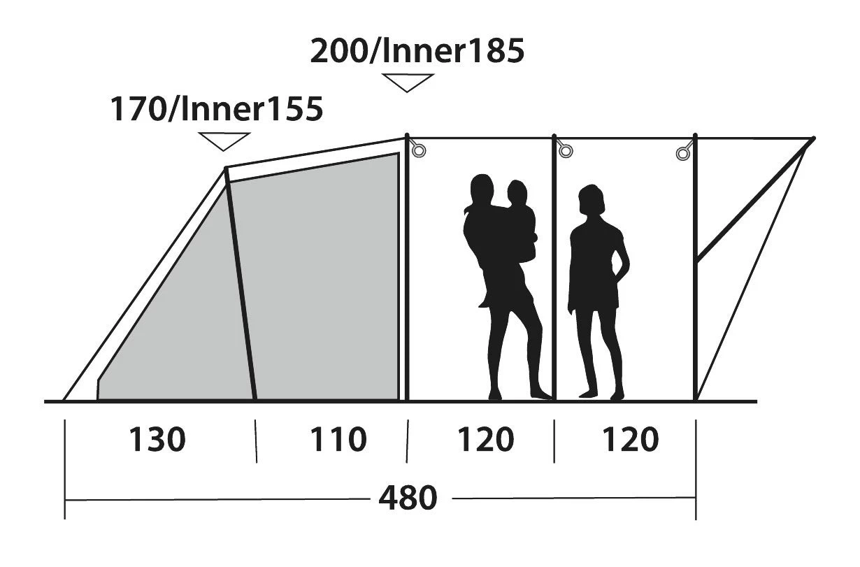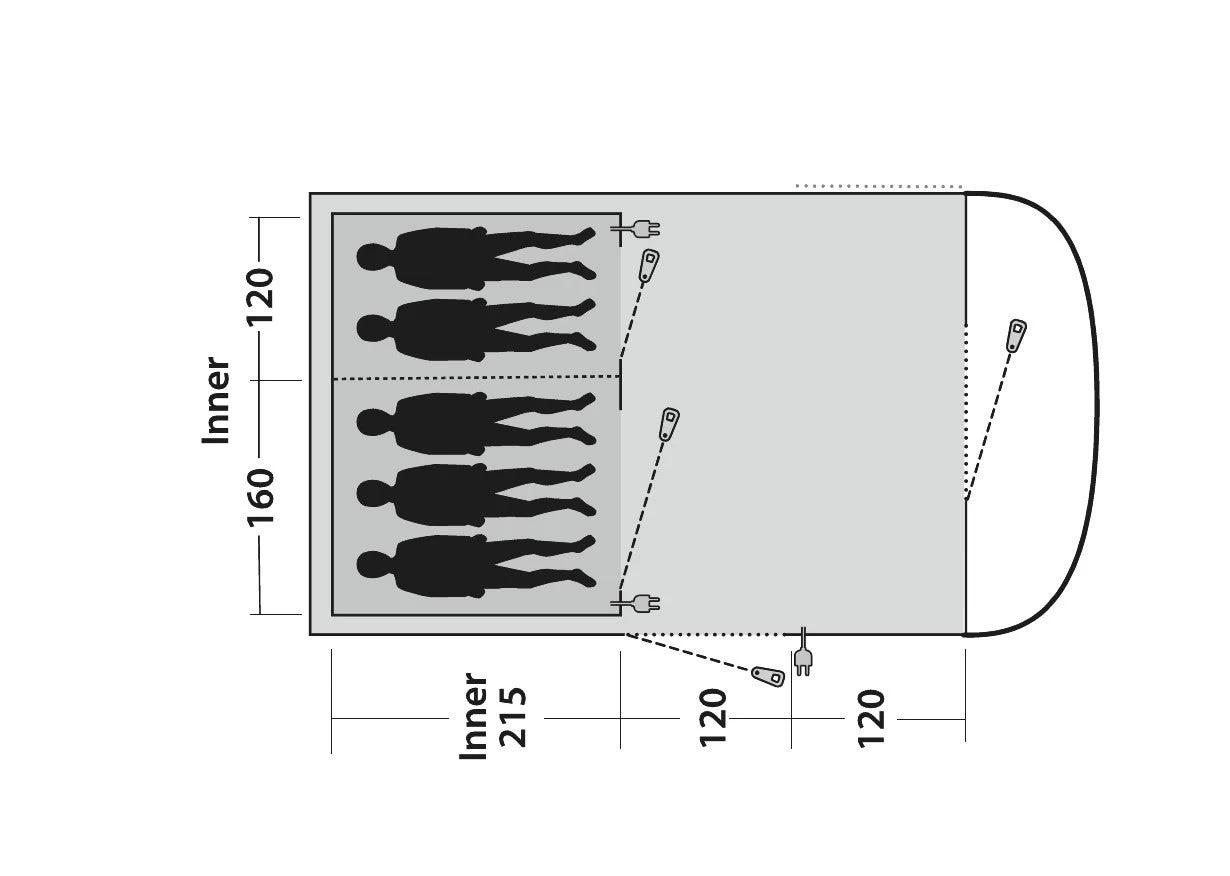 The Outwell Lawndale 500 is Perfect for families and friends seeking fast pitching shelter with plenty of space for long weekends outdoors, the Outwell Lawndale 500 tunnel tent sleeps five in two new Premier Bedrooms. Packed with Outwell innovation, style and design detail, it benefits from a Rain Safe front for shelter over the front door with insect mesh.