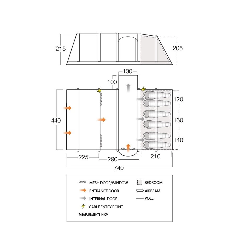 - High Cable Entry – Allows you to neatly run electrical cables out into the awning area at the front of the tent
