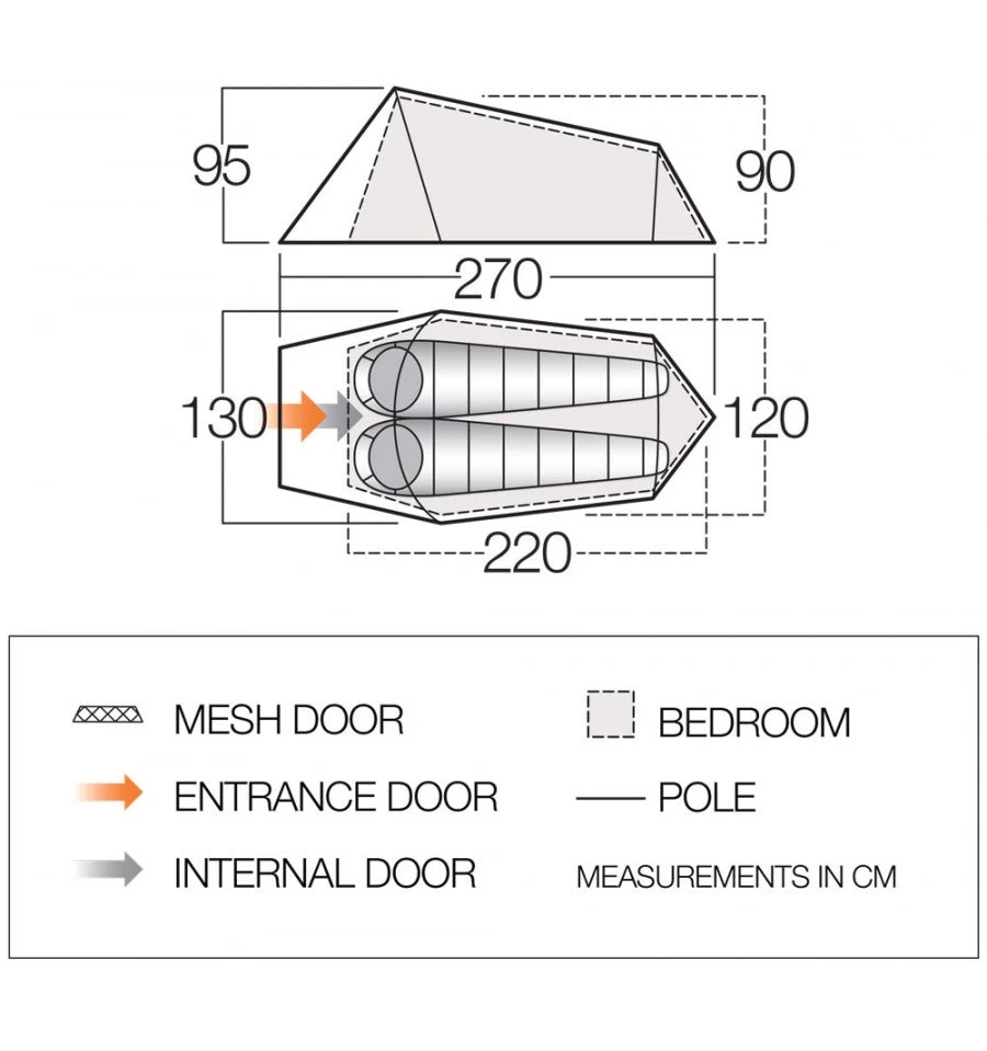 - Inner First Pitch – Simple and quick to pitch. Allows the tent to be used without the flysheet in warm climates